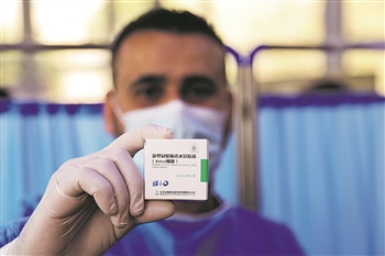3月2日,医护人员在伊拉克巴格达展示中国产新冠疫苗。中国援助伊拉克的首批中国产新冠疫苗2日凌晨运抵伊首都巴格达。伊卫生部长哈桑·塔米米当天宣布启动疫苗接种计划。 新华社发