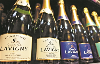 3月2日,在法国巴黎商店内拍摄的不同品牌的香槟。法国的香槟是中欧地理标志协定中首批受保护的欧盟地理标志产品。新华社记者 高静 摄