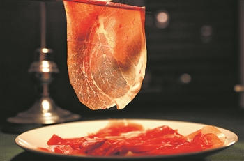 3月2日,在意大利罗马拍摄的帕尔玛火腿。意大利的帕尔玛火腿是中欧地理标志协定中首批受保护的欧盟地理标志产品。新华社记者 程婷婷 摄