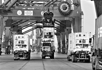 江苏连云港码头:各类出口货物等待装船运输