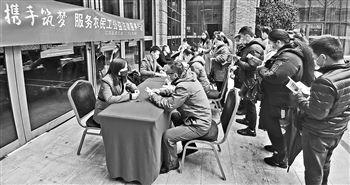 3月5日,湖北省武汉市江汉区总工会与区司法局学雷锋法援志愿者在江汉区经济开发区红T时尚广场开展“尊法守法·携手筑梦”服务园区职工、农民工法律维权活动。本次活动特邀3位专业律师,就来访职工关心的权益保障事宜和相关法律问题进行了耐心的解答。李长林 摄/中新社