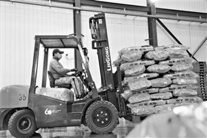 3月10日,在甘肃临泽县张掖国家级玉米种子产业园内,一家玉米种子生产企业的工人在搬运包装好的种子。截至2020年底,临泽县从事杂交玉米种子生产的企业达到31家,种子生产面积约占全国杂交玉米种子生产面积的10%。