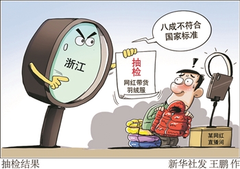 记者3月10日从浙江省消费者权益保护委员会获悉,浙江省消保委联合宁波市消保委近期对各网络直播平台销售的部分羽绒服装就消费者关心的质量参数开展比较试验,结果显示八成样品不符合国家标准。 新华社发 王鹏 作