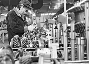 3月14日,工人在唐山市丰润区一家传动设备企业的生产线上工作。