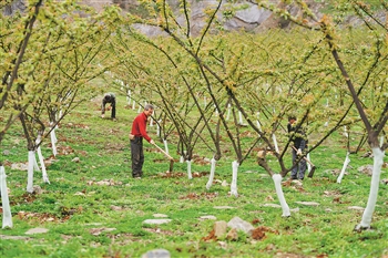 3月18日,村民在重庆市北碚区静观镇中华村的矿山果园劳作。