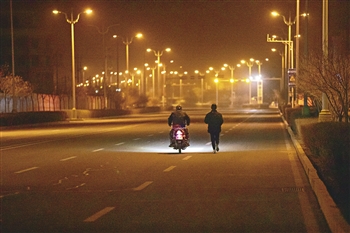 3月16日,刚经历沙尘暴过境的内蒙古呼和浩特土默特左旗,天空还是土黄色。凌晨5时不到,马路上的灯还没熄灭,郑国花和父亲郑龙已经走出家门开始一天的训练。距家不足200米的一条柏油路就是父女俩的训练场。因为起得早,怕影响到邻居休息,父女俩推着摩托车走向柏油路。