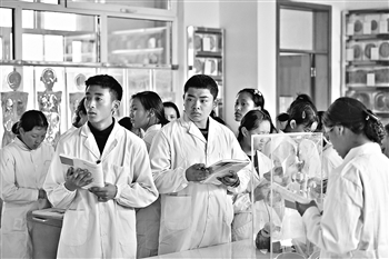3月16日,在果洛藏族自治州职业技术学校,2020级护理专业学生在上课。近年来,青海省果洛藏族自治州不断加大职业教育投入,改善教学条件,提升教育基础设施,培养藏医学、学前教育等地区发展紧缺人才,助力地方经济社会发展。新华社记者 张龙 摄