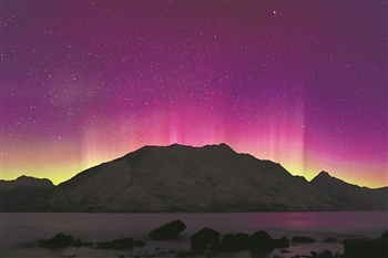 这是3月20日在新西兰南岛昆斯敦拍摄到的极光。 当日,新西兰南岛南部大部分地区都可以看到明显的极光,持续时间超过3小时。 新华社发(孙晓桐 摄)