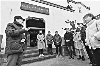 3月18日,在杭州市临安区板桥镇的临安新四军历史纪念馆,90岁的孟永迪老人(左一)在给乡镇的入党积极分子讲述革命历史和他自己参加过的解放战争的亲身经历。近期,浙江省杭州市临安区板桥镇党委政府通过组织乡镇基层党员和入党积极分子参观新四军纪念馆、听老兵故事、党史知识竞赛等方式,迎接中国共产党成立100周年。新华社记者 徐昱 摄