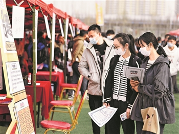 3月24日,学生在春季校园招聘会上查看企业招聘需求。