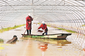3月23日,泗洪县龙集镇虾农在大棚内捕捞小龙虾。