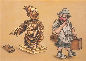 故事发生于博物馆,剧情出现在展品和游客之间。从历史角度看,也可以说出现于古人和今人之间。或许是今人看古人看得过于着迷,或许是今人忙于将自己的所见所闻发朋友圈,可以确定的是,他的钱包掉了,还全然不知。“先生,你的钱包。”古人急了,忍不住开口说话了。古人的提醒,惊讶了瞻仰他的游客,也惊动了我们这些场外的看客。了不起的古人,了不起的气度,了不起的漫画。