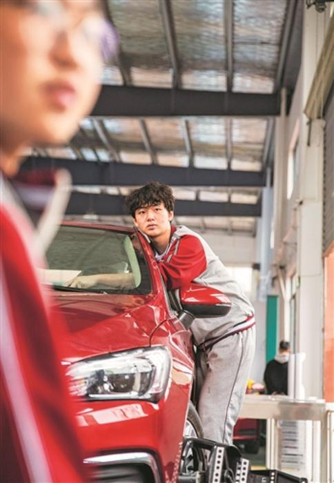 4月1日,位于安徽省合肥市肥东县的合肥理工学校汽车创新实训中心,备战汽修类全国职业院校技能大赛安徽省选拔赛的选手在训练四轮定位。