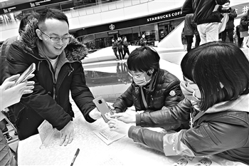 3月29日,北京市朝阳门街道在银河SOHO下沉广场开展了新冠疫苗接种集中宣传活动,为辖区商务楼宇内的保安、保洁等服务人员,及企业员工发放新冠疫苗接种手机贴。据悉,朝阳门街道辖区内,凡接种过新冠疫苗的商务楼宇人员都将获得手机贴,出入楼宇时,只需展示手机后面的手机贴即可进入。 本报记者 刘金梦 摄