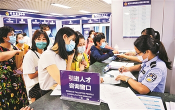 4月2日,外省人员在海口市公安局美兰分局人口和出入境管理服务中心办理引进人才落户业务。