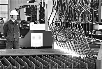 4月1日,江西省新余市袁河经济开发区一家装配式建筑企业钢铁产品加工线生产红火,工人正利用自动化设备加工钢板。近年来,江西省新余市工业园区瞄准“绿色、环保、节能”,加快制造业转型升级、提质增效,通过构建新型制造业体系推动制造业向高端化、智能化、绿色化转变。