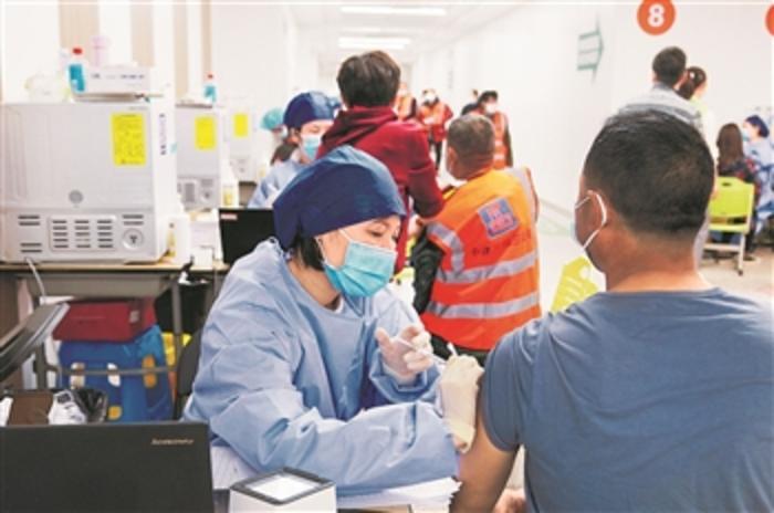 据悉,考虑到工人作业时间,上海市奉贤区金海街道协调西渡接种点,为辖区内的3000多名建设工人开设了夜间接种通道,方便工人接种新冠疫苗。