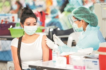 4月7日,居民在泰国曼谷接种中国科兴新冠疫苗。