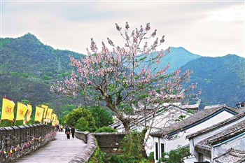 4月7日,游客在临海的台州府城文化旅游区游览江南长城。