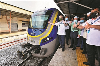 由中车株洲电力机车有限公司(中车株机)为马来西亚研制的混合动力米轨动车组11日在马北部吉兰丹州上线运营。 新华社记者 朱炜 摄