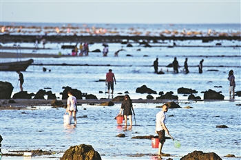 潮落时到滩涂上捡拾海产品的过程,称为赶海。记者走访发现,近年来,这一既久远又新鲜的“玩海”方式,逐渐被更多游客所知,带动了海边商家生意的火热,拉动了当地的旅游消费。