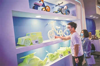 近年来,河北省邢台市平乡县通过举办博览会促产业提质升级,首次出现在本届博览会的3D打印技术,将为平乡自行车、童车、玩具的设计研发助力,加快产品升级迭代。柴更利 摄/人民图片