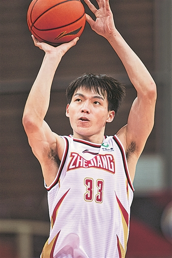 上图为浙江稠州金租队球员吴前在比赛中投篮。