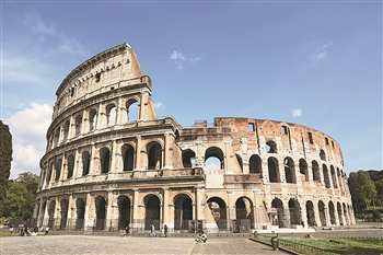 4月21日,人们在意大利首都罗马的斗兽场外休闲。