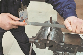 “天天跟锯、锉、锤、钻打交道,没有哪个钳工能保证手不受伤。” 何飞迎摊开手,左手虎口附近的几道疤痕十分扎眼。“这些都是当年读技校时留下的。那时练錾削,练到后面是要闭着眼睛的。手被砸肿、砸伤是家常便饭。”