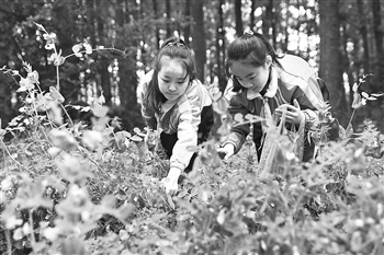 4月25日,淮北市第三实验小学的学生在采摘豌豆。