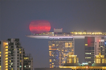 4月27日,“超级月亮”出现在新加坡城市的天空。 新华社发 (邓智炜 摄)