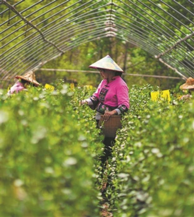 近日,河北省临城县西部太行山深处的茶园进入采摘期。2012年,这个茶园将茶树从南方移植到太行山区,经过精心栽培,茶树逐渐进入盛产期。