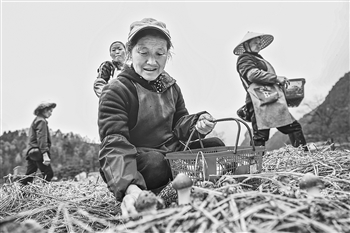 目前,赤松茸正值采摘时节。在贵州柏村镇后坝社区,工人们正埋头苦干,忙得不亦乐乎。