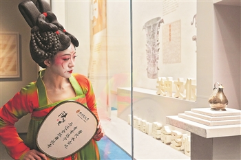 4月27日,“唐宫小姐姐”参观郑州博物馆新馆。当日,郑州博物馆新馆迎来媒体探馆日。