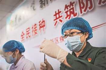 5月5日,医护人员在沈北新区新冠疫苗接种方舱准备为市民接种疫苗。