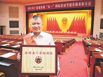 徐文流在广东省庆祝“五一”国际劳动节暨劳模表彰大会现场。