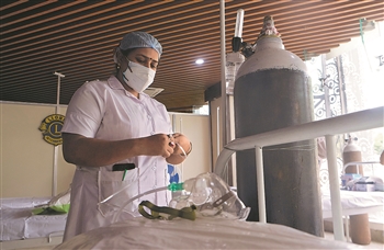5月3日,医务人员在印度加尔各答为新冠患者准备氧气。据印度卫生部4日公布的数据,印度累计新冠确诊病例超过2000万例。