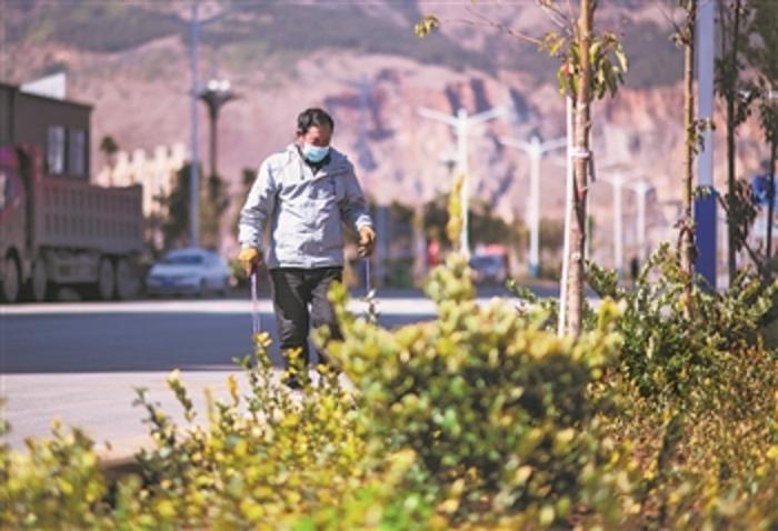 图为保洁员在云南省会泽县的一个社区打扫卫生。新华社记者 江文耀 摄