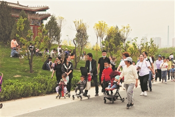 5月2日,山西太原,游客正在公园里漫步度假。据了解,今年“五一”小长假期间,我国多地的公园、动物园、植物园等景区游客爆满。统计显示,5月1日至5日,全国国内旅游出游2.3亿人次,同比增长119.7%。为了更好地落实疫情防控要求并满足游客出行需求,各景区在实行预约制的同时,还通过大数据平台,对客流进行精准预测,有效调控分流,确保游客假期出行安全。