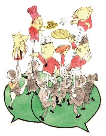 正如我们看到的,朋友圈是一个喧嚣的大舞台,每天、每时、每刻,都在上演不同风格的人间大戏。有正剧,有喜剧,也有闹剧;有传播消息的,有喷云吐雾的,也有恶语伤人的;有点火的,有扇风的,也有拍砖的;有打赏的,有打架的,也有“打酱油的”。
