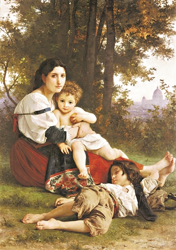 作者威廉·阿道夫·布格罗(1825~1905)是法国19世纪上半叶至19世纪末法国学院艺术绘画的最重要人物之一,他的作品常取材于古代的神话和寓言,绘画风格写实,几乎近似照片,并以超现实的美展现出来,在人物的皮肤、手和双脚上有着细致而独特的绘画技艺。尤其是画作里的女性,无论是仙女还是农村姑娘,形象都非常恬美,背景多为乡间丛林,宁逸静瑟。