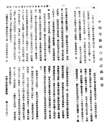 《中国劳动组合书记部宣言》,刊登于《共产党》月刊第6号,1921年出版。