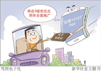 为进一步推进简政放权、减证便民,提升在线政务服务水平,公安部决定自6月1日起,在天津、成都、苏州3个城市试点机动车驾驶证电子化,为驾驶人提供在线“亮证”“亮码”服务。电子驾驶证具有统一性、实时性、安全性3个特点。为确保电子驾驶证的应用效果,3个试点城市发放的电子驾驶证在全国范围内有效。
