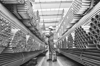 近日,工人在由天津转移而来的唐山正元管业有限公司车间内对管材进行保护处理。