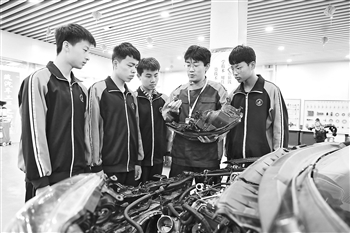 5月8日,河北省河间市职业教育中心教师指导学生进行汽修实践操作。近年来,该中心以就业市场需求为导向,积极优化职业教育结构和布局,通过与企业联合办学,提高学生动手能力,有针对性地培养“订单式”职业人才,拓宽毕业生就业渠道。 新华社记者 骆学峰 摄