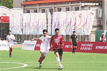 图为东城区体育馆路街道足球队对阵西城区金融街街道中国银行青年足球队。