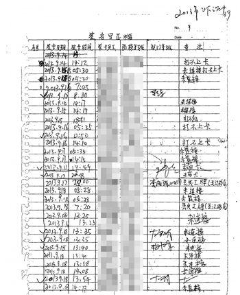 ③唐小华提交的手写员工签到表显示,考勤机有出现故障的情况。