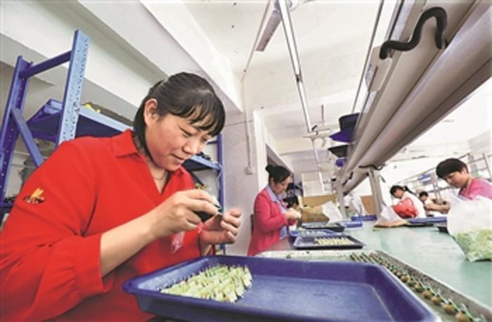 5月12日,务工人员在湖南省资兴市唐洞街道一家电子厂生产车间工作。近年来,资兴市实施“筑巢引凤”就业工程,出台就业培训、创业扶持等政策,引进劳动密集型企业,将岗位送到群众家门口,助力就业增收。 本报通讯员 李科 摄