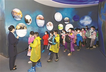 5月13日,学生在张家界市武陵源区世界地质公园博物馆参观研学。