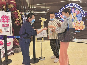 检票时,李冀涛还要兼顾引导观众进入相应影厅、告知观众各功能区位置,如休息区、卫生间、取票处等。电影开始前,他提前到影厅关灯、关门,电影放映结束,再去开门、开灯,完成清场,俗称“跑厅”。